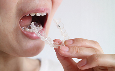 患者さん自身でマウスピースを取り外せます。これまで通りに食事や歯みがきができ、装置に食べ物が挟まるといった心配もありません。