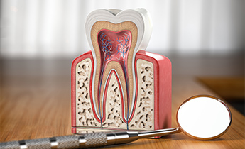 再生療法(エムドゲイン)は、歯周病によって失われた歯ぐきや歯を支える骨の再生を促す治療法です。歯の根の表面にエムドゲインという薬剤を塗布し、歯周組織が再生しやすい環境を整えることで、歯の保存を目指します。